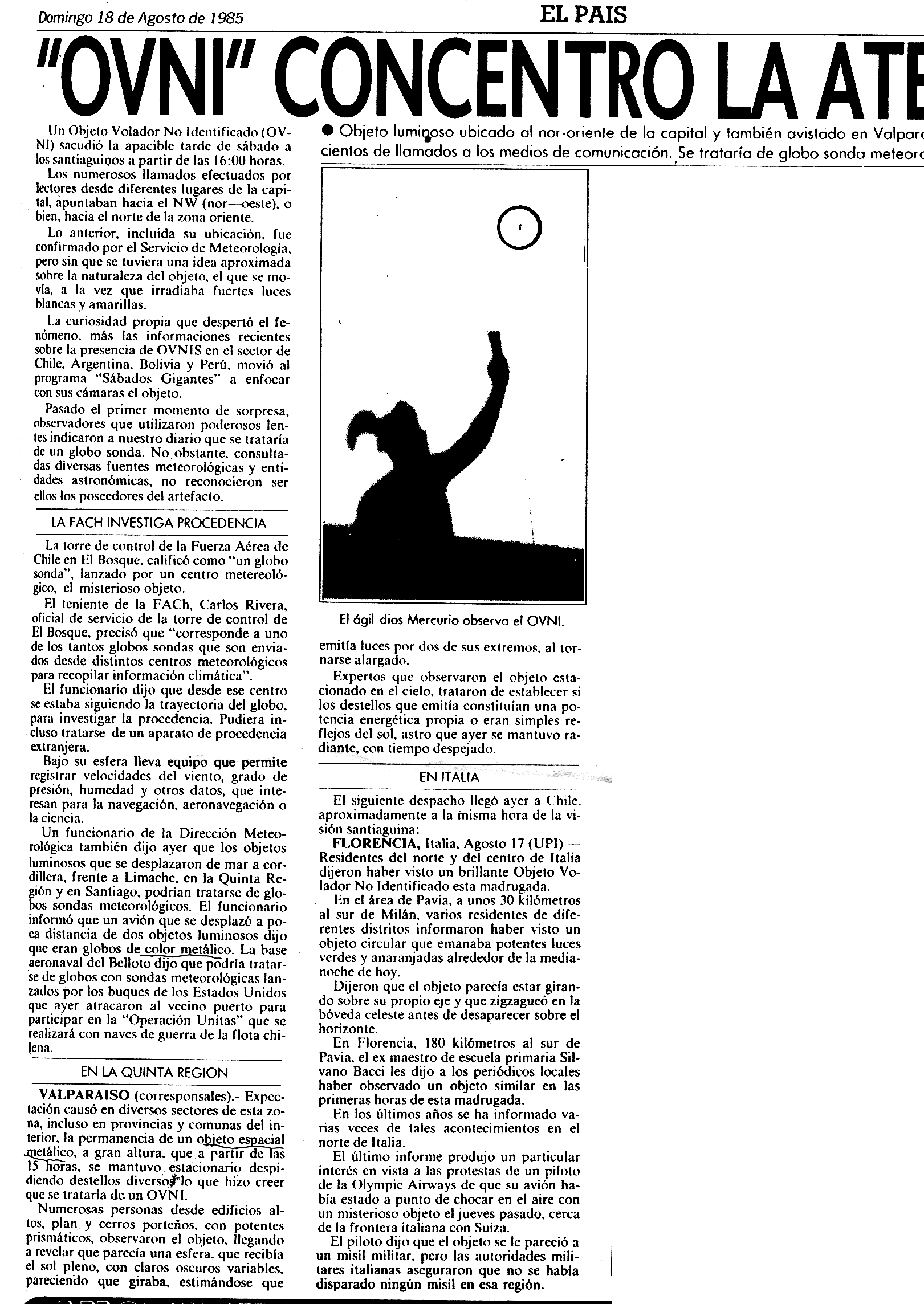 a 800 kilómetros de la Tierra", fue descrito el artefacto